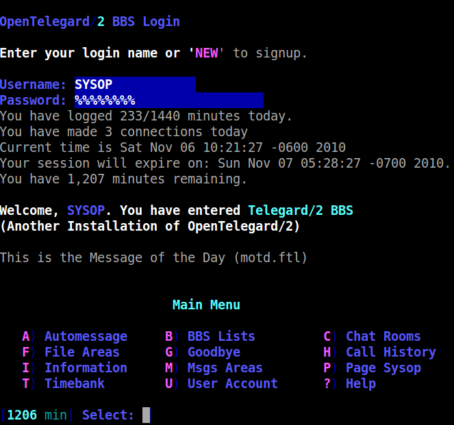Fig. 5.1 An early bulletin board system. The entire interface was just plain text, and you had to type in commands to navigate to the different threads and read or reply with messages.#