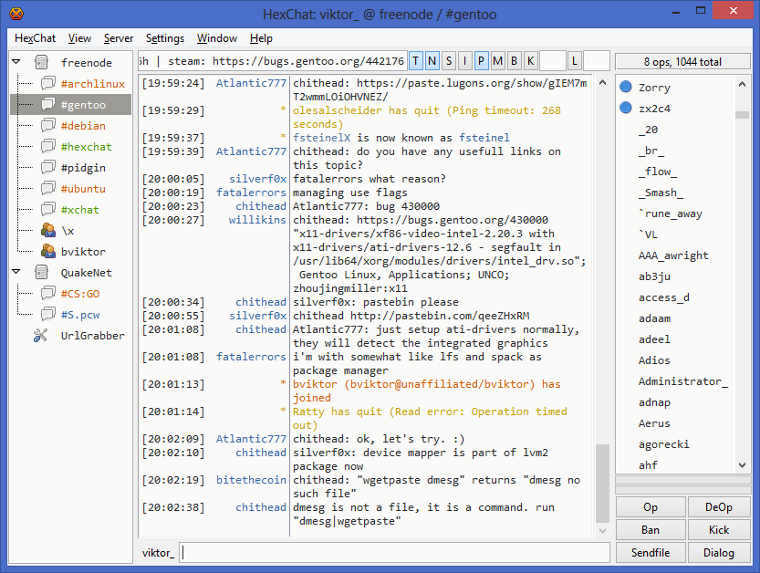 Fig. 5.3 An irc chat application, where you can join a room, and watch and participate in the live conversation.#