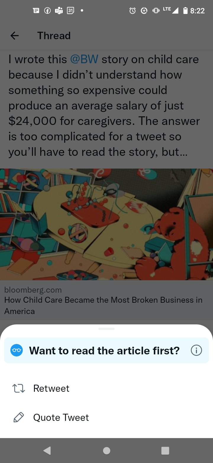 Another example of intentionally adding friction was a design change Twitter made in an attempt to reduce misinformation: When you try to retweet an article, if you haven’t clicked on the link to read the article, it stops you to ask if you want to read it first before retweeting.