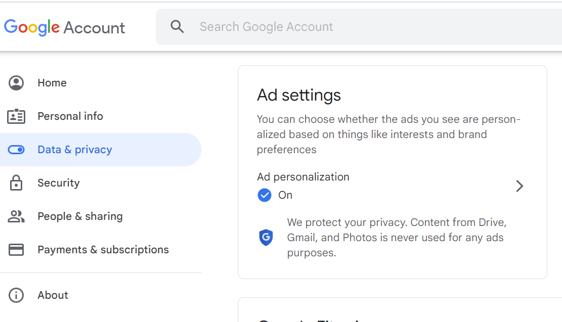 Fig. 8.4 The Data & Privacy settings have a place where you can find the ad personalization settings.#